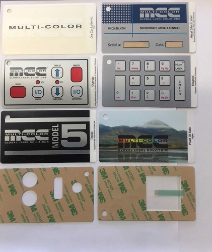 We design, print and manufacture graphic overlays for a wide range of industries Graphic overlays, front decal panels and labels are silk screen printed on the subsurface of polycarbonate which offers unbeatable and durable print protection which is suitable for a broad range of appliances. Printing onto clear polycarbonate also allows the introduction of clear or tinted windows for use with LCDs or LEDs. We can cut graphic overlays to any shape and emboss for use in conjunction with membrane switches.